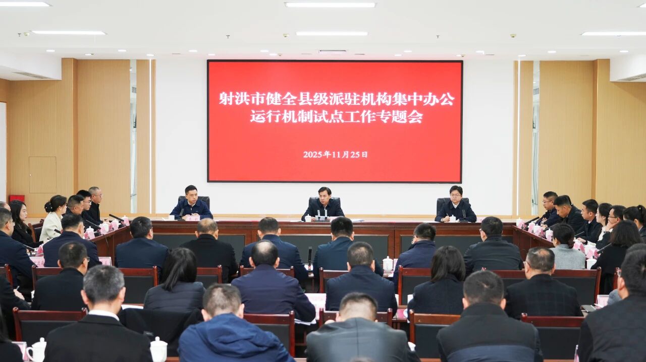 ▲射洪市健全县级派驻机构集中办公运行机制试点工作专题会召开