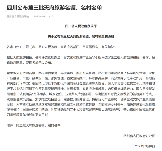 成都市:彭州市蟠龙村、邛崃市花楸村、崇州市五星村、蒲江县铁牛村