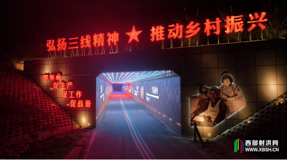 进入时光隧道,流光溢彩,如梦如幻。隧道两侧的“乡村振兴二十字方针”,在灯光的照耀下,带领我们开启3536三线城之旅。