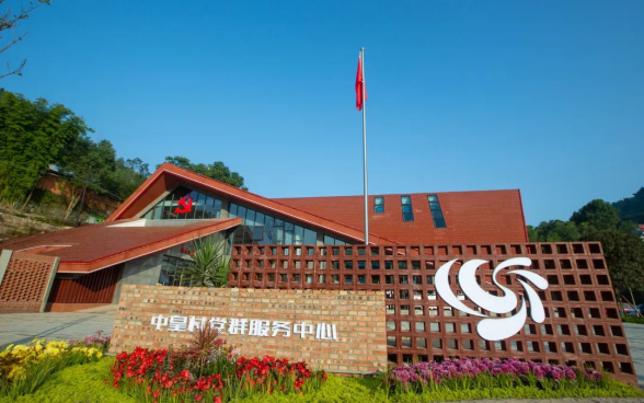 瞿河镇中皇村党群服务中心(新时代文明实践站)修建于2022年6月,紧邻遂德高速万林出口和3536三线城,建筑用地面积2409m2,建筑面积964.72m2,于2022年9月正式投入使用。该党群服务中心以“五星红旗迎风飘扬"为设计理念,以"从党群中心走进群众心中"为服务理念,有机融入“三线建设"文化,承载党的理论传播、文化活动开展、便民服务、村民自治、电子商务、游客接待等功能,是村级党组织与党员群众联系的重要桥梁,是集服务、管理、展示、教育于一身的开放式、多功能的党建工作综合平台。党群服务中心场馆设施包括:党群服务大厅、党建文化展示厅、党员活动室、图书阅览室、文娱活动室等。
